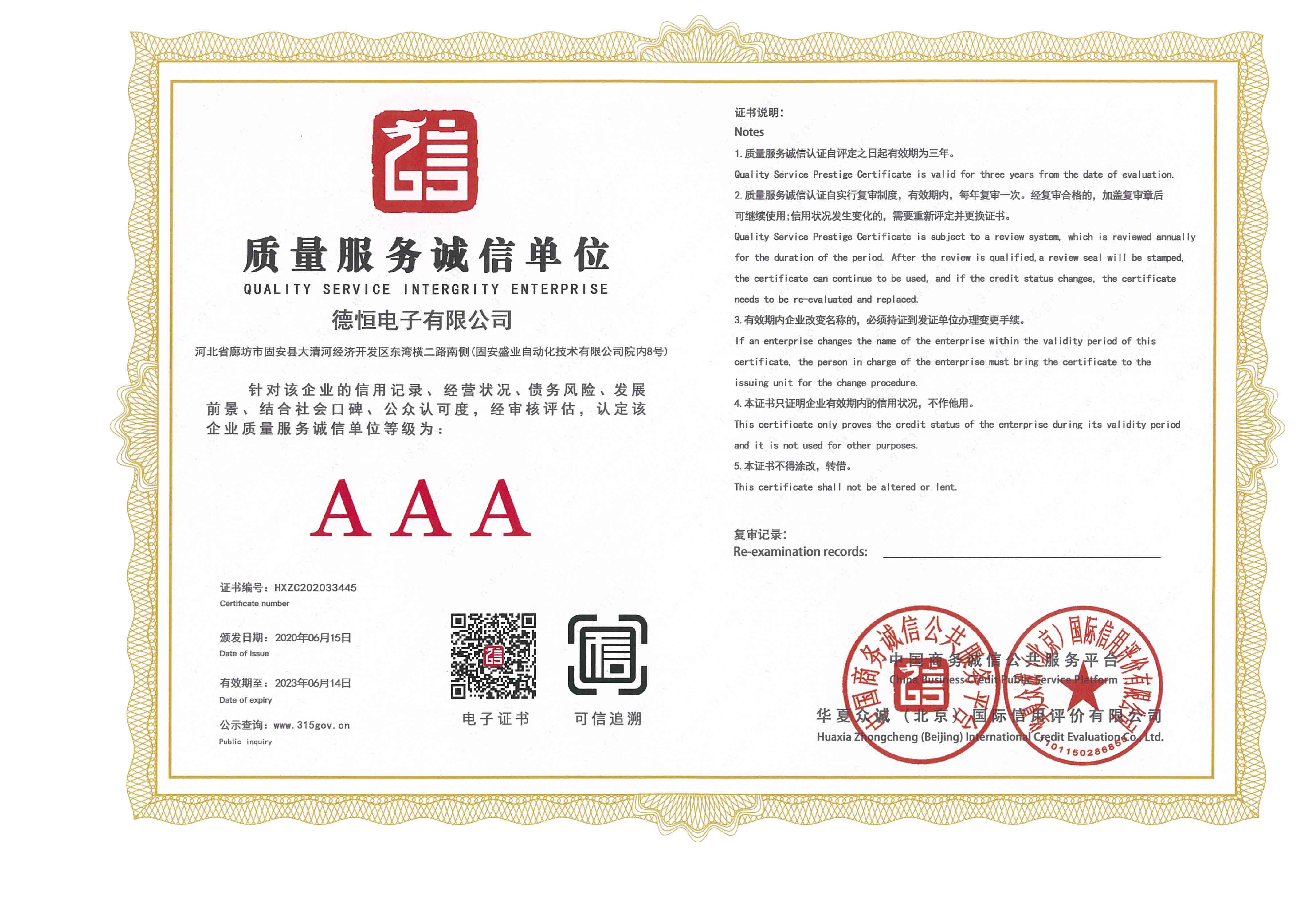 德恒公司致力于为日益发展壮大的客户群提供先进的技术,优质的产品以及完善的售后服务。